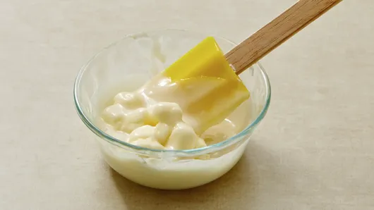 Step6Meanwhile, in small microwavable bowl, microwave reserved icing uncovered on High 10 seconds; stir in melted butter, remaining 1/4 teaspoon orange extract and 1/8 teaspoon salt.