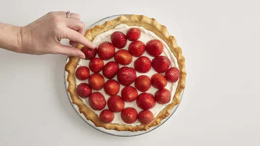 var configuration = {"title":"Strawberry Cream Cheese Pie","introduction":"Talk about a triple threat! This five-star pie is a delicious combination of cheesecake, cream pie and fruit pie all in one, topped with a kiss of chocolate drizzle for even more yum. Use strawberries, blueberries, raspberries or a combination of fruit for the top layer, and make quick work of the crust with our premade refrigerated pie dough. Fair warning: This pie might disappear even faster than it took you to prepare it!","servingSize":"1 Serving","image":{"small":{"media":"(min-width: 0px)","src":"https://mojo.generalmills.com/api/public/content/eJAhtmVs5kmUNBj5dwyuEg_webp_base.webp?v=5a2f0fec\u0026t=e724eca7b3c24a8aaa6e089ed9e611fd"},"medium":{"media":"(min-width: 500px)","src":"https://mojo.generalmills.com/api/public/content/eJAhtmVs5kmUNBj5dwyuEg_webp_base.webp?v=5a2f0fec\u0026t=191ddcab8d1c415fa10fa00a14351227"},"large":{"media":"(min-width: 767px)","src":"https://mojo.generalmills.com/api/public/content/eJAhtmVs5kmUNBj5dwyuEg_webp_base.webp?v=5a2f0fec\u0026t=191ddcab8d1c415fa10fa00a14351227"},"alt":"Strawberry Cream Cheese Pie"},"contributor":{"label":"By","name":"Pillsbury Kitchens","profileUrl":"/about-us","displayDate":{"label":"Updated","date":"Apr 18, 2022"}},"ingredientGroups":[{"name":"Crust","ingredients":[{"quantity":"1","description":"crust from 1 box (14.1 oz) refrigerated Pillsbury™ Pie Crusts (2 Count), softened as directed on box","productLink":"/products/pie-crust/refrigerated-pie-crust"}]},{"name":"Filling","ingredients":[{"quantity":"1","description":"package (8 oz) cream cheese, softened"},{"quantity":"1/3","description":"cup sugar"},{"quantity":"1/4","description":"to 1/2 teaspoon almond extract"},{"quantity":"1","description":"cup whipping cream"},{"quantity":"2","description":"pints (4 cups) strawberries"}]},{"name":"Garnish","ingredients":[{"quantity":"1/2","description":"cup semisweet chocolate chips"},{"quantity":"1","description":"tablespoon shortening"}]}],"steps":[{"description":"Heat oven to 450°F. Make pie crust as directed on box for One-Crust Baked Shell using 9-inch glass pie pan or 10-inch tart pan with removable bottom. If using tart pan, trim edge if necessary. Bake 9 to 11 minutes or until light golden brown. Cool completely, about 30 minutes."},{"description":"In large bowl with electric mixer, beat cream cheese on medium speed until fluffy. Gradually beat in sugar and almond extract until well blended."},{"description":"In small bowl with electric mixer, beat whipping cream on high speed until soft peaks form. Fold whipped cream into cream cheese mixture. Spoon into cooled baked shell.","stepShotImageUrl":"//mojo.generalmills.com/api/public/content/zJHiP--7hEmvHSzh58kqpg_webp_base.webp?v=a4b78655\u0026t=51a43a57af4046789e5a7f20567b1195"},{"description":"Arrange strawberries, pointed side up, over cream cheese mixture. Refrigerate while preparing garnish.","stepShotImageUrl":"//mojo.generalmills.com/api/public/content/fivGrKyb-kORwGa5mfAExA_webp_base.webp?v=c8ff0ede\u0026t=51a43a57af4046789e5a7f20567b1195"},{"description":"In 1-quart saucepan, melt chocolate chips and shortening over low heat, stirring constantly, until smooth. Drizzle over strawberries and cream cheese mixture. Refrigerate at least 1 hour or until set. Store in refrigerator."}],"tips":[{"title":"","description":"Swap some or all of the strawberries on top with fresh blueberries, fresh raspberries or a combination.","category":"Recipe/Ingredient Facts","tipShots":[]},{"title":"","description":"Swap the melted semisweet chocolate chips for melted white chocolate chips to drizzle on top, if desired.","category":"Recipe/Ingredient Facts","tipShots":[]},{"title":"","description":"Don’t have almond extract on hand? Use vanilla extract in the filling instead.","category":"Recipe/Ingredient Facts","tipShots":[]},{"title":"","description":"One frozen Pillsbury™ Deep Dish Pie Crust may be substituted for the refrigerated Pillsbury™ Pie Crust in this recipe. Bake pie crust as directed on package for One-Crust Baked Pie Shell. ","category":"Substitution","tipShots":[]},{"title":"","description":"This recipe has been Kitchen Tested.","category":"Kitchen Tested","tipShots":[]}],"kitchenTips":[{"title":"","description":"Swap some or all of the strawberries on top with fresh blueberries, fresh raspberries or a combination.","category":"Recipe/Ingredient Facts","tipShots":[]},{"title":"","description":"Swap the melted semisweet chocolate chips for melted white chocolate chips to drizzle on top, if desired.","category":"Recipe/Ingredient Facts","tipShots":[]},{"title":"","description":"Don’t have almond extract on hand? Use vanilla extract in the filling instead.","category":"Recipe/Ingredient Facts","tipShots":[]},{"title":"","description":"One frozen Pillsbury™ Deep Dish Pie Crust may be substituted for the refrigerated Pillsbury™ Pie Crust in this recipe. Bake pie crust as directed on package for One-Crust Baked Pie Shell. ","category":"Substitution","tipShots":[]}],"additionalContent":[],"faq":[],"tipCategories":[{"categoryName":"Kitchen Tested","heading":"More About This Recipe","cssClass":"recipePartStory","expandOnInit":false,"expandText":"More +","collapseText":"Less -","expandEventName":"","collapseEventName":"","image":"","tips":[{"title":"","description":"This recipe has been Kitchen Tested.","category":"Kitchen Tested","tipShots":[]}],"isExpandable":false}],"nutritionInfo":{"configuration":{"showAsTable":false,"noNutritionInformationAvailableMessage":"No nutrition information available for this recipe","poweredByText":"\u003cp\u003eNutrition information for this recipe is estimated using a leading nutrition calculation application, but is an estimate only. Actual nutrition values will vary based on the exact ingredients or brands you may use.\u003c/p\u003e\n\u003ca href=\u0022http://developer.edamam.com\u0022\u003ePowered By \u003cimg src=\u0022-/media/C4F33FD467AB4A3AB59AAC4F6306AB04.ashx\