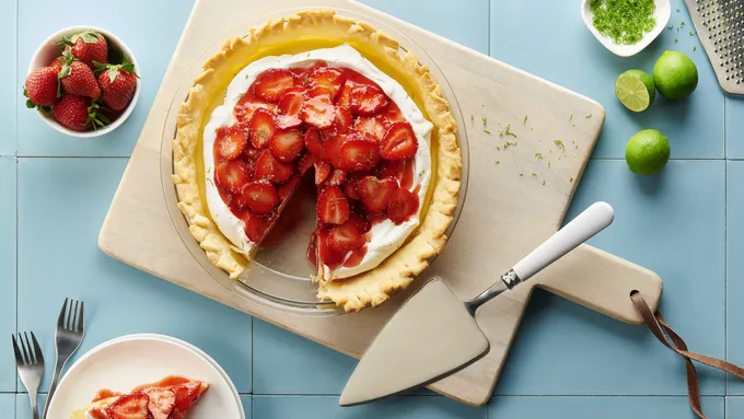 Fruit and cream lovers, this retro pie is for you! A flaky Pillsbury™ pie crust is filled with a fluffy fruit-flavored mixture studded with fresh strawberries, and everything takes a chill in the fridge for a few hours until the pie is ready to slice and serve. The concept might seem a little old-fashioned—yes, there is Jell-O™ involved— but based on its five-star rating, we can confidently say this classic pie is still very much welcome at all of our dessert tables.