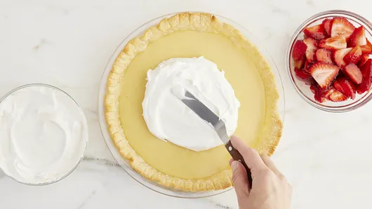 var configuration = {"title":"Strawberry-Key Lime Pie","introduction":"Strawberry-Key Lime Pie is a must for summer. It\u0027s an irresistible warm-weather dessert and comes together with only 20 minutes of prep. This Strawberry-Key Lime Pie recipe puts a fresh twist on the beloved signature Key lime pie. Start by filling a baked Pillsbury™ Pie Crust with a tart and tangy Key lime filling. Finish it off with a generous whipped topping layer, and serve with a delicious Key lime-infused, fresh strawberry fruit topping. Strawberry-Key Lime Pie is a show-stopping dessert that\u0027s guaranteed to hit the spot.","servingSize":"1 Serving","image":{"small":{"media":"(min-width: 0px)","src":"https://mojo.generalmills.com/api/public/content/2OCk4mGso024rrqJ5MJfRA_webp_base.webp?v=d7433273\u0026t=e724eca7b3c24a8aaa6e089ed9e611fd"},"medium":{"media":"(min-width: 500px)","src":"https://mojo.generalmills.com/api/public/content/2OCk4mGso024rrqJ5MJfRA_webp_base.webp?v=d7433273\u0026t=191ddcab8d1c415fa10fa00a14351227"},"large":{"media":"(min-width: 767px)","src":"https://mojo.generalmills.com/api/public/content/2OCk4mGso024rrqJ5MJfRA_webp_base.webp?v=d7433273\u0026t=191ddcab8d1c415fa10fa00a14351227"},"alt":"Strawberry-Key Lime Pie"},"contributor":{"label":"By","name":"Pillsbury Kitchens","profileUrl":"/about-us","displayDate":{"label":"Updated","date":"May 20, 2021"}},"ingredientGroups":[{"ingredients":[{"quantity":"1","description":"crust from 1 box (14.1 oz) refrigerated Pillsbury™ Pie Crusts (2 Count), softened as directed on box","productLink":"/products/pie-crust/refrigerated-pie-crust"},{"quantity":"1","description":"can (14 oz) sweetened condensed milk"},{"quantity":"3","description":"egg yolks"},{"quantity":"1/3","description":"cup plus 1 tablespoon bottled or fresh Key lime juice"},{"quantity":"1 1/2","description":"cups sliced fresh strawberries"},{"quantity":"2","description":"tablespoons strawberry jam"},{"quantity":"2","description":"cups frozen whipped topping, thawed (from 8-oz container)"}]}],"steps":[{"description":"Heat oven to 450°F. Unroll pie crust; place pie crust in 9-inch glass pie plate as directed on box for One-Crust Filled Pie. Do not prick crust. Bake 7 to 9 minutes or until light golden brown (if crust puffs up in center after baking, gently push down with bottom of metal measuring cup). Cool 10 minutes.","stepShotImageUrl":"//mojo.generalmills.com/api/public/content/-5X6poB-FUmFCME-47yHhg_webp_base.webp?v=48683c03\u0026t=51a43a57af4046789e5a7f20567b1195"},{"description":"Reduce oven temperature to 350°F."},{"description":"Meanwhile, in medium bowl, beat sweetened condensed milk, egg yolks and 1/3 cup of the lime juice with whisk until well blended. Pour into baked pie shell; spread evenly. Bake 10 to 12 minutes or until filling is set. Cool on cooling rack 15 minutes. Cover and refrigerate until chilled, at least 1 1/2 hours.","stepShotImageUrl":"//mojo.generalmills.com/api/public/content/p2GBv-YTQESupTyhu-y2rQ_webp_base.webp?v=02046ece\u0026t=51a43a57af4046789e5a7f20567b1195"},{"description":"In small bowl, mix strawberries, remaining 1 tablespoon lime juice and the jam until evenly coated. Spread whipped topping onto center of pie, mounding slightly in center and spreading up to 1 inch near edges. Just before serving, top with strawberry mixture.","stepShotImageUrl":"//mojo.generalmills.com/api/public/content/f3zHaeckeUugtlZRMtQ3qQ_webp_base.webp?v=bc255036\u0026t=51a43a57af4046789e5a7f20567b1195"}],"tips":[{"title":"","description":"If you are unable to find bottled Key lime juice or Key limes, substitute with regular limes instead. Garnishing with a bit of fresh lime zest also gives this Strawberry-Key Lime Pie recipe color and freshness.","category":"Variation","tipShots":[]},{"title":"","description":"Store this strawberry lime pie loosely covered in the refrigerator.","category":"Storage","tipShots":[]},{"title":"","description":"The strawberry topping should be made just before serving your Strawberry-Key Lime Pie for the best results.","category":"Method Note","tipShots":[]},{"title":"","description":"Kitchen Tested - 3/2021.","category":"Kitchen Tested","tipShots":[]}],"kitchenTips":[{"title":"","description":"If you are unable to find bottled Key lime juice or Key limes, substitute with regular limes instead. Garnishing with a bit of fresh lime zest also gives this Strawberry-Key Lime Pie recipe color and freshness.","category":"Variation","tipShots":[]},{"title":"","description":"Store this strawberry lime pie loosely covered in the refrigerator.","category":"Storage","tipShots":[]},{"title":"","description":"The strawberry topping should be made just before serving your Strawberry-Key Lime Pie for the best results.","category":"Method Note","tipShots":[]}],"additionalContent":[],"faq":[],"tipCategories":[{"categoryName":"Kitchen Tested","heading":"More About This Recipe","cssClass":"recipePartStory","expandOnInit":false,"expandText":"More +","collapseText":"Less -","expandEventName":"","collapseEventName":"","image":"","tips":[{"title":"","description":"Kitchen Tested - 3/2021.","category":"Kitchen Tested","tipShots":[]}],"isExpandable":false},{"categoryName":"Method Note","heading":"","cssClass":"recipePartMethodNote","expandOnInit":false,"expandText":"More +","collapseText":"Less -","expandEventName":"","collapseEventName":"","image":"","tips":[{"title":"","description":"The strawberry topping should be made just before serving your Strawberry-Key Lime Pie for the best results.","category":"Method Note","tipShots":[]}],"isExpandable":false}],"nutritionInfo":{"configuration":{"showAsTable":false,"noNutritionInformationAvailableMessage":"No nutrition information available for this recipe","poweredByText":"\u003cp\u003eNutrition information for this recipe is estimated using a leading nutrition calculation application, but is an estimate only. Actual nutrition values will vary based on the exact ingredients or brands you may use.\u003c/p\u003e\n\u003ca hr