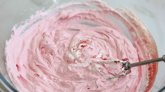 Step5Meanwhile, add dry gelatin to whipped topping; stir with whisk until well combined. Fill food-storage plastic bag with strawberry topping.