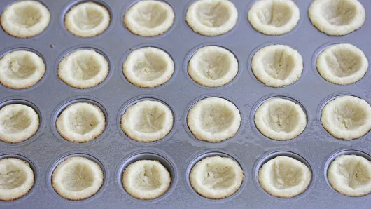Step3Bake 10 to 12 minutes or until golden brown. Remove cookies from oven. Gently press small spoon into center of each baked cookie to make shape of cup. Cool in pan 10 minutes.