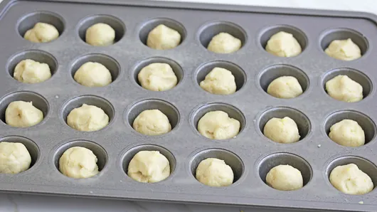 Step2Into medium bowl, break up cookie dough. Add lemon peel and lemon extract; knead dough with fingers until well mixed. Shape tablespoonfuls of dough into balls; place 1 ball in each muffin cup.