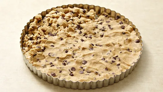 Step1Heat oven to 350° F. Press cookie dough evenly in bottom and 1 1/2-inches up side of ungreased 9-inch tart pan with removable bottom. Bake 15 to 25 minutes or until golden brown and edges are set. Cool completely in pan on cooling rack, about 1 hour.