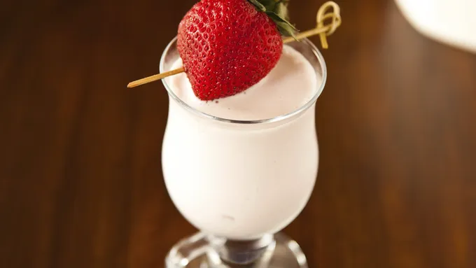 Peach yogurt and strawberry carbonated beverage combine in this "berry easy" blended drink for party guests of all ages!