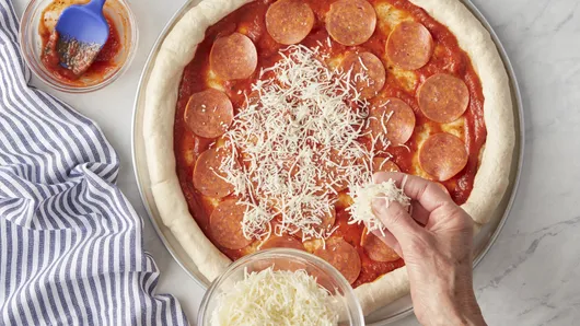 We made this recipe classic pepperoni, for a super-simple meal everyone will love. One of the greatest things about making pizza at home, is how you can adjust the taste to your family’s liking just by changing the toppings. Feel free to make it your own, whether you're a fan of garden-fresh veggies, crave more meats, or wish to experiment with unconventional sauces or toppings like sauerkraut or pickles – the choices are endless!