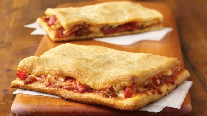 Satisfy your cravings for comfort food by diving into the gooey goodness of a stuffed crust pizza. Is there anything more pleasurable to eat than a warm, cheesy, mouthwatering slice of pizza? There is if it’s extra cheesy! Made with Pillsbury pizza crust dough and cheese sticks, it's the best of both convenience and simplicity rolled into one.
