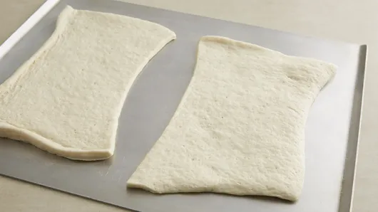 Heat oven to 425°F. Grease extra-large cookie sheet or 2 smaller cookie sheets with shortening or cooking spray. Unroll dough on work surface. With sharp knife or pizza cutter, cut dough crosswise into 2 rectangles. Place rectangles on cookie sheet(s).