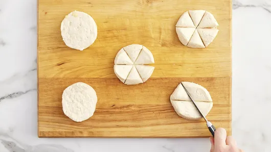 Separate dough into 5 biscuits. Cut each biscuit into 6 pieces. Place in medium bowl.