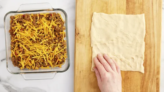 var configuration = {"title":"Taco Crescent Casserole (Cooking for Two)","introduction":"Taco casserole with crescent rolls? It\u0027s a sure hit! If you\u0027re craving classic comfort food, this beefy, cheesy Tex-Mex bake delivers. It\u0027s a simple, well-rounded dinner that\u0027s hot and ready to enjoy in just 45 minutes—and you\u0027d never guess this crescent roll taco casserole is loaded with fresh veggies!","servingSize":"1 Serving","image":{"small":{"media":"(min-width: 0px)","src":"https://mojo.generalmills.com/api/public/content/2FXmkDTYfkaD5v2Pb44UuA_webp_base.webp?v=e6b4e5b4\u0026t=e724eca7b3c24a8aaa6e089ed9e611fd"},"medium":{"media":"(min-width: 500px)","src":"https://mojo.generalmills.com/api/public/content/2FXmkDTYfkaD5v2Pb44UuA_webp_base.webp?v=e6b4e5b4\u0026t=191ddcab8d1c415fa10fa00a14351227"},"large":{"media":"(min-width: 767px)","src":"https://mojo.generalmills.com/api/public/content/2FXmkDTYfkaD5v2Pb44UuA_webp_base.webp?v=e6b4e5b4\u0026t=191ddcab8d1c415fa10fa00a14351227"},"alt":"Taco Crescent Casserole (Cooking for Two)"},"contributor":{"label":"By","name":"Pillsbury Kitchens","profileUrl":"/about-us","displayDate":{"label":"Updated","date":"Apr 21, 2023"}},"ingredientGroups":[{"ingredients":[{"quantity":"1","description":"lb ground beef (at least 80% lean)"},{"quantity":"1/4","description":"cup chopped onion"},{"quantity":"1/4","description":"cup chopped red bell pepper"},{"quantity":"1","description":"can (7 oz) corn, drained"},{"quantity":"1","description":"can (4 oz) Old El Paso™ Chopped Green Chiles"},{"quantity":"1","description":"packet (1 oz) Old El Paso™ Original Taco Seasoning Mix"},{"quantity":"1/3","description":"cup water"},{"quantity":"3/4","description":"cup shredded cheddar cheese (3 oz)"},{"quantity":"1","description":"can (4 oz) refrigerated Pillsbury™ Original Crescent Rolls (4 Count)","productLink":"/products/crescents/original-4-count"}]}],"steps":[{"description":"Heat oven to 375°F. Spray 8-inch square (2-quart) glass baking dish with cooking spray. In 10-inch nonstick skillet, cook beef, onion and bell pepper over medium-high heat 6 to 8 minutes, stirring occasionally, until beef is no longer pink; drain.","stepShotImageUrl":"//mojo.generalmills.com/api/public/content/i1w7XrnPuUe6cnI8so7bFA_webp_base.webp?v=50aa3add\u0026t=51a43a57af4046789e5a7f20567b1195"},{"description":"Stir corn, green chiles, taco seasoning mix and water into beef mixture in skillet. Heat to simmering over medium heat. Simmer 3 to 4 minutes, stirring occasionally, until slightly thickened. Spoon into baking dish. Top beef mixture with 1/2 cup of the cheese.","stepShotImageUrl":"//mojo.generalmills.com/api/public/content/nvHiEhUY0kqJnmadoe2H6Q_webp_base.webp?v=0f05b6c2\u0026t=51a43a57af4046789e5a7f20567b1195"},{"description":"Unroll dough; separate into two 6x4-inch rectangles. Place one rectangle next to the other to create a 6x8-inch rectangle. Press seams together and press out to create an 8-inch square. ","stepShotImageUrl":"//mojo.generalmills.com/api/public/content/VeZFwbN9oUmEHAvRJf-p3Q_webp_base.webp?v=f1f27d3f\u0026t=51a43a57af4046789e5a7f20567b1195"},{"description":"Place dough in baking dish on top of cheese layer, and tuck in edges. Top with remaining 1/4 cup cheese. Bake 16 to 20 minutes or until deep golden brown and crescent is baked through.","stepShotImageUrl":"//mojo.generalmills.com/api/public/content/gvzq6fTDbE60FrI5_VSYtw_webp_base.webp?v=dc91456a\u0026t=51a43a57af4046789e5a7f20567b1195"}],"tips":[{"title":"","description":"Top taco crescent roll casserole with fresh cilantro, shredded lettuce, chopped tomatoes, sliced ripe olives, taco sauce or salsa.","category":"Presentation/Garnish","tipShots":[]},{"title":"","description":"For an even heartier meal, serve taco crescent roll casserole with prepared Spanish rice or plain white rice.","category":"Serving Suggestions/Menu","tipShots":[]},{"title":"","description":"Like a little heat? Substitute shredded pepper Jack cheese for the cheddar.","category":"Substitution","tipShots":[]},{"title":"","description":"Kitchen Tested: 4/2023.","category":"Kitchen Tested","tipShots":[]}],"kitchenTips":[{"title":"","description":"Top taco crescent roll casserole with fresh cilantro, shredded lettuce, chopped tomatoes, sliced ripe olives, taco sauce or salsa.","category":"Presentation/Garnish","tipShots":[]},{"title":"","description":"For an even heartier meal, serve taco crescent roll casserole with prepared Spanish rice or plain white rice.","category":"Serving Suggestions/Menu","tipShots":[]},{"title":"","description":"Like a little heat? Substitute shredded pepper Jack cheese for the cheddar.","category":"Substitution","tipShots":[]}],"additionalContent":[],"faq":[],"tipCategories":[{"categoryName":"Kitchen Tested","heading":"More About This Recipe","cssClass":"recipePartStory","expandOnInit":false,"expandText":"More +","collapseText":"Less -","expandEventName":"","collapseEventName":"","image":"","tips":[{"title":"","description":"Kitchen Tested: 4/2023.","category":"Kitchen Tested","tipShots":[]}],"isExpandable":false}],"nutritionInfo":{"configuration":{"showAsTable":false,"noNutritionInformationAvailableMessage":"No nutrition information available for this recipe","poweredByText":"\u003cp\u003eNutrition information for this recipe is estimated using a leading nutrition calculation application, but is an estimate only. Actual nutrition values will vary based on the exact ingredients or brands you may use.\u003c/p\u003e\n\u003ca href=\u0022http://developer.edamam.com\u0022\u003ePowered By \u003cimg src=\u0022-/media/C4F33FD467AB4A3AB59AAC4F6306AB04.ashx\u0022 alt=\u0022Edamam\u0022 /\u003e\u003c/a\u003e","nutritionChartTitle":"Nutrition Facts","nutritionInformationLabel":"Nutrition","servingSizeText":"Serving Size:","dailyValuesDisclaimer":"*Percent Daily Values are based on a 2,000 calorie diet.","percentDailyValueText":"% Daily Value","percentDailyValueFooterTitleText":"% Daily Value*:","exchangeInfo