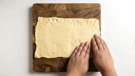 Unroll dough sheet on cutting board; press into 12x8-inch rectangle.