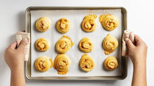 You can serve these cheesy, flaky bites warm or at room temperature, which means they’re the perfect grab-and-go snack for kickoff, overtime, and every moment in between.