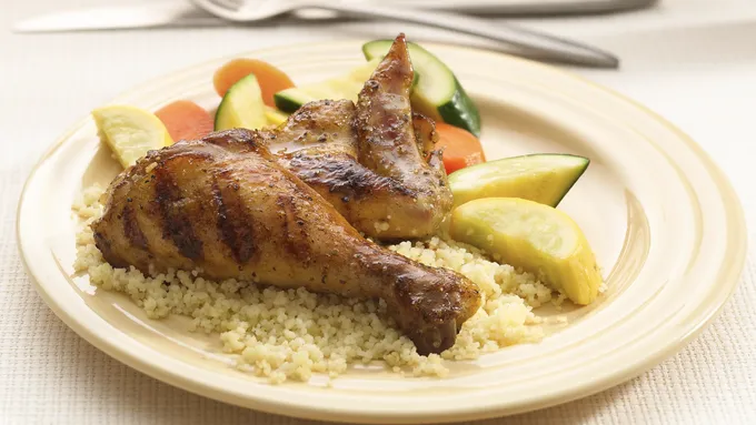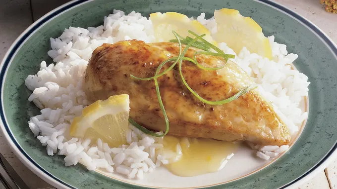 Step1In shallow glass dish, combine yogurt, lemon juice and oil; blend well. Add all remaining ingredients except chicken breast halves; blend well. Add chicken; turn to coat. Cover; refrigerate 30 to 60 minutes to marinate.