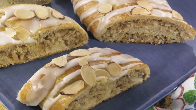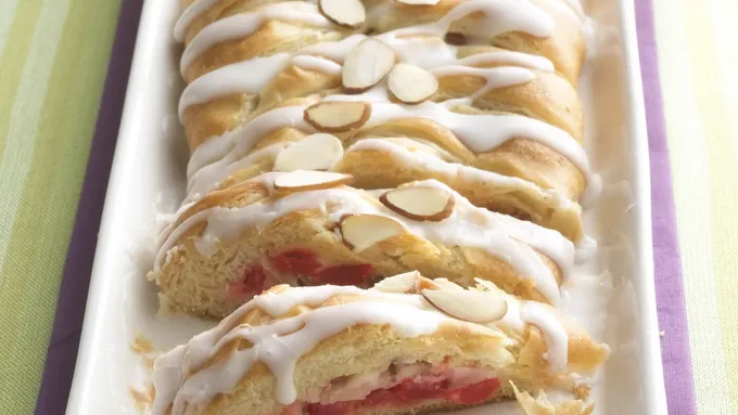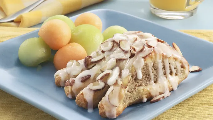 Pillsbury™ refrigerated crescent dinner rolls provides great addition to almond tea cake that’s ready in 35 minutes.