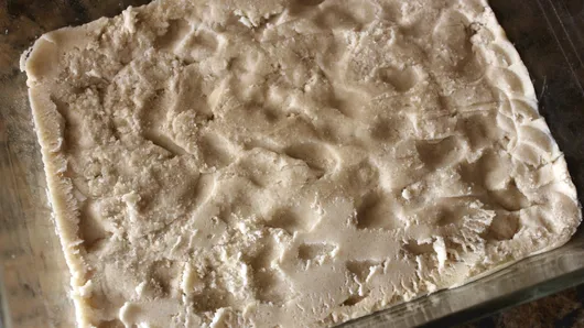 Step4Pour peanut butter mixture over cooled base. Place in freezer while making Top Layer.