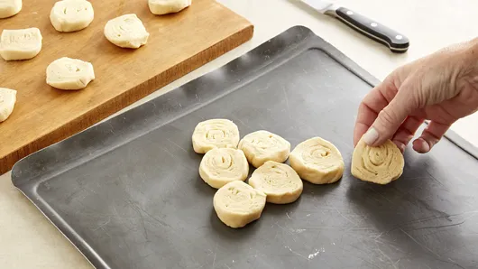 Step1Heat oven to 375°F. Remove dough from cans in rolled sections; do not unroll. Cut each section into 8 slices (16 slices from each can).