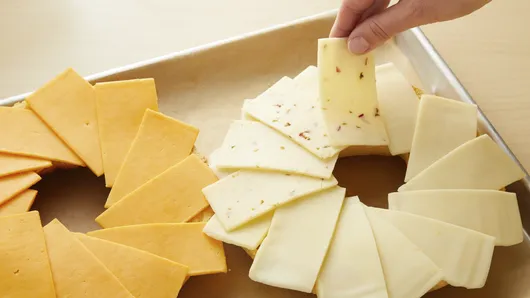 Use decorative side of ring for top of Bundtwich. Place Cheddar cheese slices evenly in decorative side of bread ring. Place mozzarella, then pepper Jack cheese slices evenly in other side of bread ring. Bake 8 to 12 minutes or until cheese is melted and rings are hot.