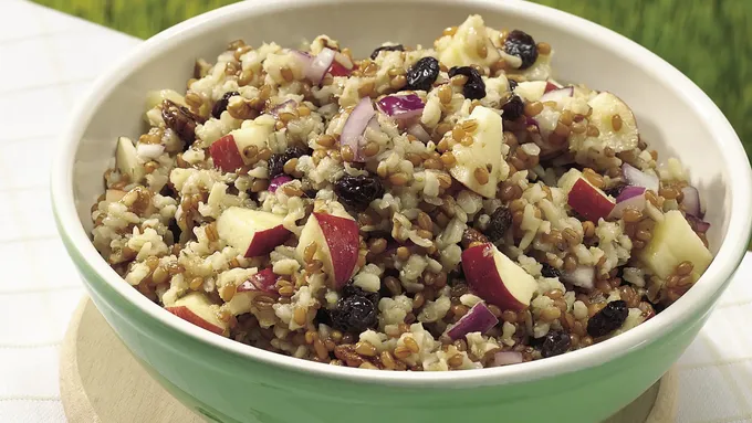 Looking for a turkey salad? Here’s one packed with brown rice, romaine lettuce, bell pepper, jicama and green onion – a flavorful side dish.