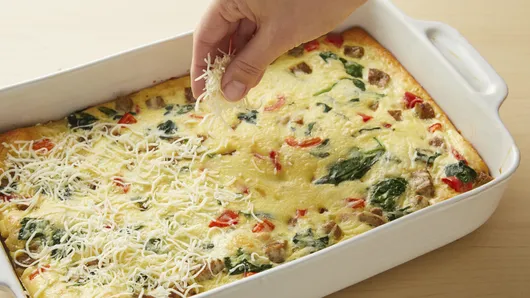 var configuration = {"title":"Turkey Sausage and Egg Breakfast Casserole","introduction":"This tasty breakfast casserole is loaded with flavor, but uses better-for-you ingredients like turkey sausage, bell peppers and spinach. And despite the addition of melty Italian cheeses and a buttery crescent crust, this satisfying egg bake still clocks in at fewer than 400 calories per serving—so you can have your brunch party and feel good about it, too.","servingSize":"1 Serving","image":{"small":{"media":"(min-width: 0px)","src":"https://mojo.generalmills.com/api/public/content/R3bbYf7fFEuUepnPhCJ7Tw_webp_base.webp?v=ba578803\u0026t=e724eca7b3c24a8aaa6e089ed9e611fd"},"medium":{"media":"(min-width: 500px)","src":"https://mojo.generalmills.com/api/public/content/R3bbYf7fFEuUepnPhCJ7Tw_webp_base.webp?v=ba578803\u0026t=191ddcab8d1c415fa10fa00a14351227"},"large":{"media":"(min-width: 767px)","src":"https://mojo.generalmills.com/api/public/content/R3bbYf7fFEuUepnPhCJ7Tw_webp_base.webp?v=ba578803\u0026t=191ddcab8d1c415fa10fa00a14351227"},"alt":"Turkey Sausage and Egg Breakfast Casserole"},"contributor":{"label":"By","name":"Pillsbury Kitchens","profileUrl":"/about-us","displayDate":{"label":"Updated","date":"Dec 3, 2018"}},"ingredientGroups":[{"ingredients":[{"quantity":"1","description":"can (8 oz) refrigerated Pillsbury™ Original Crescent Dough Sheet","productLink":"/products/crescents/recipe-creations"},{"quantity":"1","description":"tablespoon butter"},{"quantity":"1/2","description":"cup chopped onion"},{"quantity":"1/2","description":"cup chopped red bell pepper"},{"quantity":"2","description":"cups packed baby spinach leaves"},{"quantity":"4","description":"fully cooked refrigerated turkey sausage breakfast patties, chopped (1 cup) (from 11.1-oz package)"},{"quantity":"8","description":"eggs"},{"quantity":"1/2","description":"teaspoon salt"},{"quantity":"1 1/2","description":"cups shredded Italian cheese blend (6 oz)"}]}],"steps":[{"description":"Heat oven to 375°F. Spray 13x9-inch (3-quart) glass baking dish with cooking spray. Unroll dough, and press into bottom of dish; set aside. ","stepShotImageUrl":"//mojo.generalmills.com/api/public/content/zAaCOu8Z5EecvYPJ2dKDww_webp_base.webp?v=2576cd2b\u0026t=51a43a57af4046789e5a7f20567b1195"},{"description":"In 10-inch nonstick skillet, heat butter over medium-high heat until melted. Add onion and bell pepper. Cook 2 to 4 minutes, stirring occasionally, until tender and starting to brown. Stir in spinach; cook until starting to wilt. Top dough evenly with cooked vegetable mixture and sausage. ","stepShotImageUrl":"//mojo.generalmills.com/api/public/content/AKJ_Cn2DO0eUaqJOca92Hg_webp_base.webp?v=dd2e955c\u0026t=51a43a57af4046789e5a7f20567b1195"},{"description":"In medium bowl, beat eggs and salt with whisk until well beaten. Stir in 1 cup of the cheese. Pour egg mixture into baking dish, carefully spreading with spoon or spatula to distribute mixture evenly. ","stepShotImageUrl":"//mojo.generalmills.com/api/public/content/wEfhi_vfOkOBGLM4NwdLvg_webp_base.webp?v=80ad98f8\u0026t=51a43a57af4046789e5a7f20567b1195"},{"description":"Bake 20 to 25 minutes or until eggs are set and crescent bottom is golden brown. Sprinkle with remaining 1/2 cup cheese; return to oven 1 to 2 minutes or until cheese is melted. Let stand 5 minutes before serving. ","stepShotImageUrl":"//mojo.generalmills.com/api/public/content/A1R1O0hcO0S11lVepV_V9Q_webp_base.webp?v=62f3f332\u0026t=51a43a57af4046789e5a7f20567b1195"}],"tips":[{"title":"","description":"You can find precooked turkey sausage breakfast patties near the bacon and deli meats in the refrigerated meat section of the grocery store.","category":"Recipe/Ingredient Facts","tipShots":[]},{"title":"","description":"Shredded Cheddar or mozzarella cheese may be used in place of Italian cheese blend in this recipe.","category":"Substitution","tipShots":[]},{"title":"","description":"To add subtle heat, stir 1/4 teaspoon crushed red pepper flakes into egg mixture.","category":"Variation","tipShots":[]},{"title":"","description":"Adding a teaspoon or two of chopped garlic at the end of the vegetable sauté step helps to add more flavor to the mixture without adding calories.","category":"Variation","tipShots":[]},{"title":"","description":"Kitchen Tested - 10/2018","category":"Kitchen Tested","tipShots":[]}],"kitchenTips":[{"title":"","description":"You can find precooked turkey sausage breakfast patties near the bacon and deli meats in the refrigerated meat section of the grocery store.","category":"Recipe/Ingredient Facts","tipShots":[]},{"title":"","description":"Shredded Cheddar or mozzarella cheese may be used in place of Italian cheese blend in this recipe.","category":"Substitution","tipShots":[]},{"title":"","description":"To add subtle heat, stir 1/4 teaspoon crushed red pepper flakes into egg mixture.","category":"Variation","tipShots":[]},{"title":"","description":"Adding a teaspoon or two of chopped garlic at the end of the vegetable sauté step helps to add more flavor to the mixture without adding calories.","category":"Variation","tipShots":[]}],"additionalContent":[],"faq":[],"tipCategories":[{"categoryName":"Kitchen Tested","heading":"More About This Recipe","cssClass":"recipePartStory","expandOnInit":false,"expandText":"More +","collapseText":"Less -","expandEventName":"","collapseEventName":"","image":"","tips":[{"title":"","description":"Kitchen Tested - 10/2018","category":"Kitchen Tested","tipShots":[]}],"isExpandable":false}],"nutritionInfo":{"configuration":{"showAsTable":false,"noNutritionInformationAvailableMessage":"No nutrition information available for this recipe","poweredByText":"\u003cp\u003eNutrition information for this recipe is estimated using a leading nutrition calculation application, but is an estimate only. Actual nutrition values will vary based on the exact ingredients or brands you may use.\u003c/p\u003e\n\u003ca href=\u0022http://developer.edamam.com\u0022\u003ePowered By \u003ci