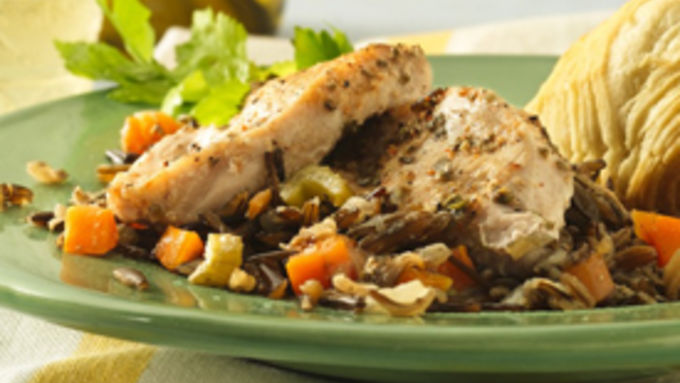 To maximize moistness, the turkey tenderloins are baked whole over the wild rice mixture. Cut them into slices before serving.
