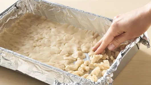 Step1Heat oven to 350°F. Line 13x9-inch pan with foil, leaving extra hanging off sides; spray bottom with cooking spray. Press dough in bottom of pan; bake 20 minutes. Cool 5 minutes on cooling rack.