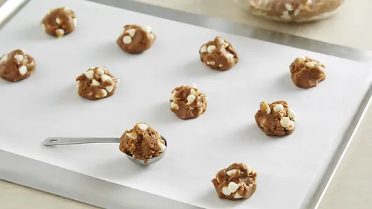 Step3On ungreased cookie sheets, drop dough by tablespoonfuls 2 inches apart.