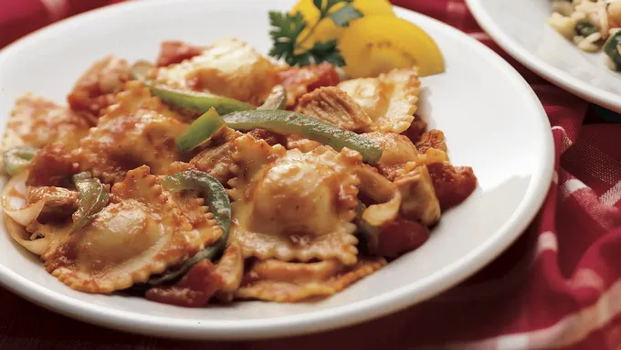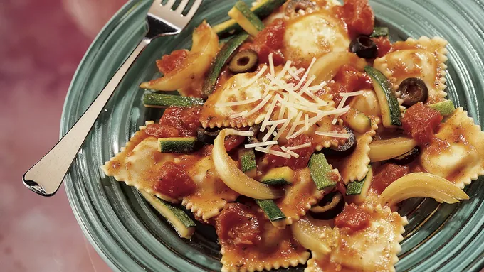 - 1 (9-oz.) pkg. refrigerated cheese ravioli