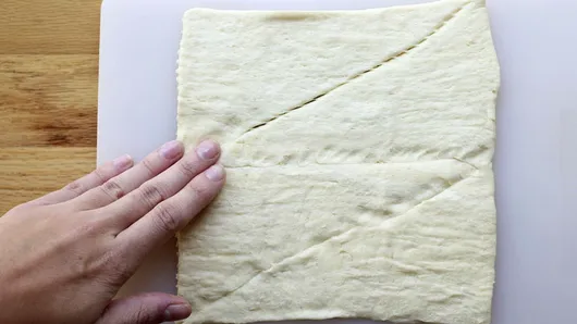 Step1Preheat the oven to 375°F. If using crescent rolls, unroll dough, separate at perforations to create 4 rectangles. Press the other perforations to seal. If using dough sheet, unroll dough and cut into 4 rectangles.