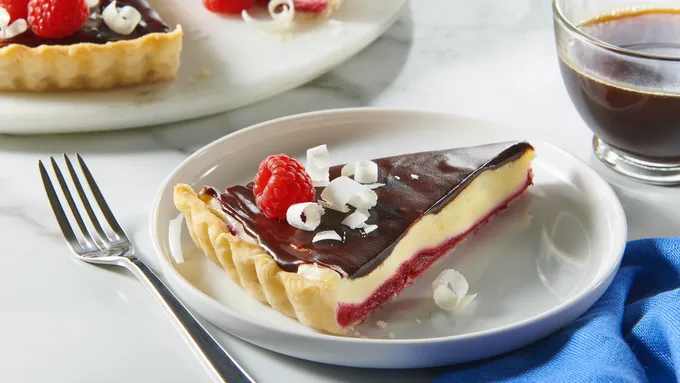 Pillsbury™ pie crust provides a simple addition to this delicious chocolate and raspberry pie - a wonderful dessert.