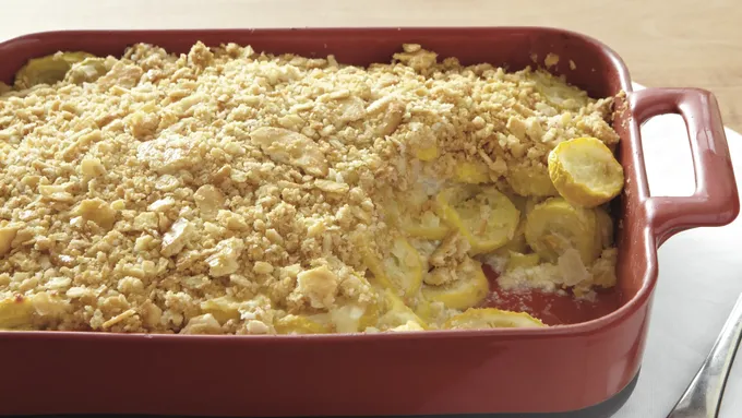 Enjoy this cheesy yellow squash casserole that’s made in microwave - a tasty side dish.
